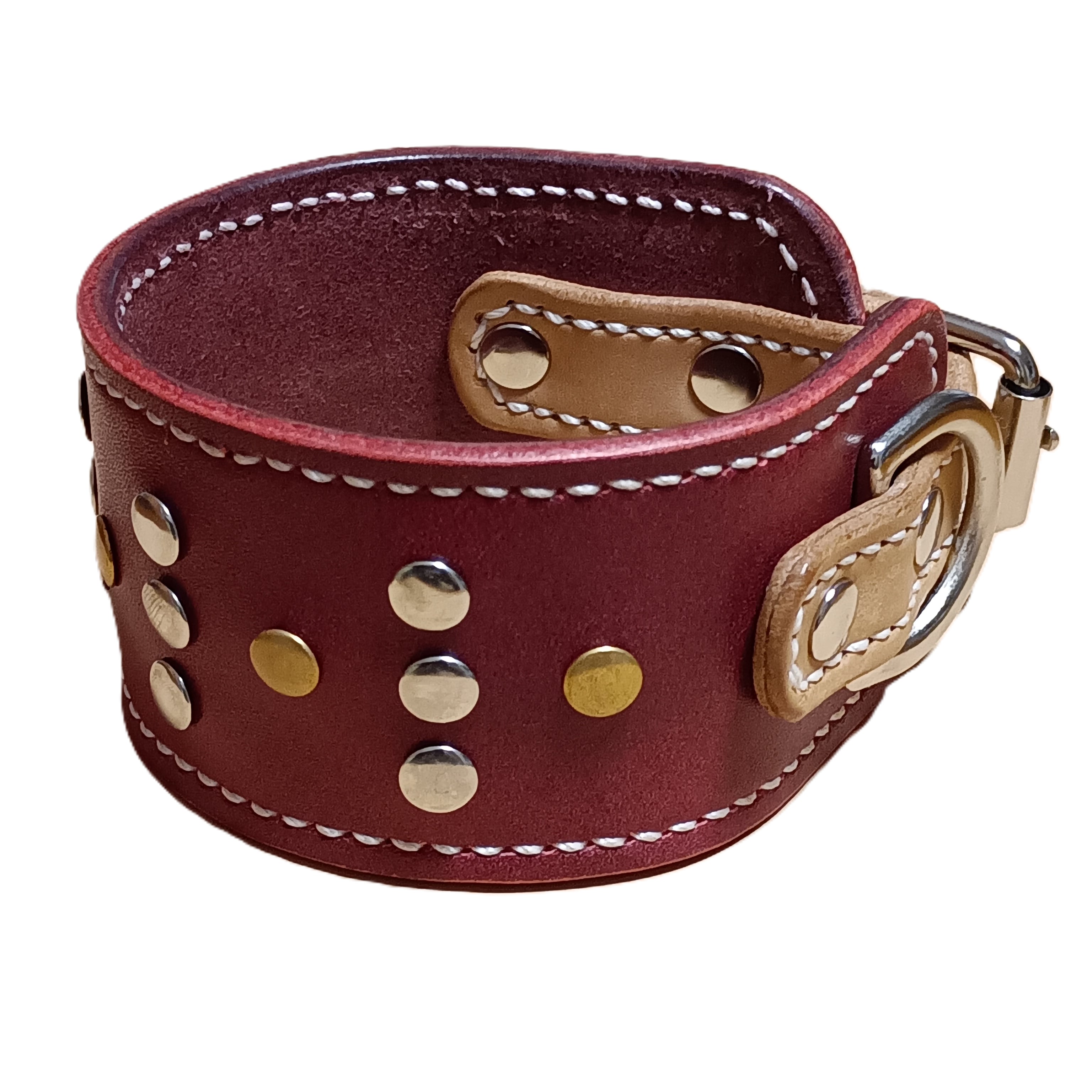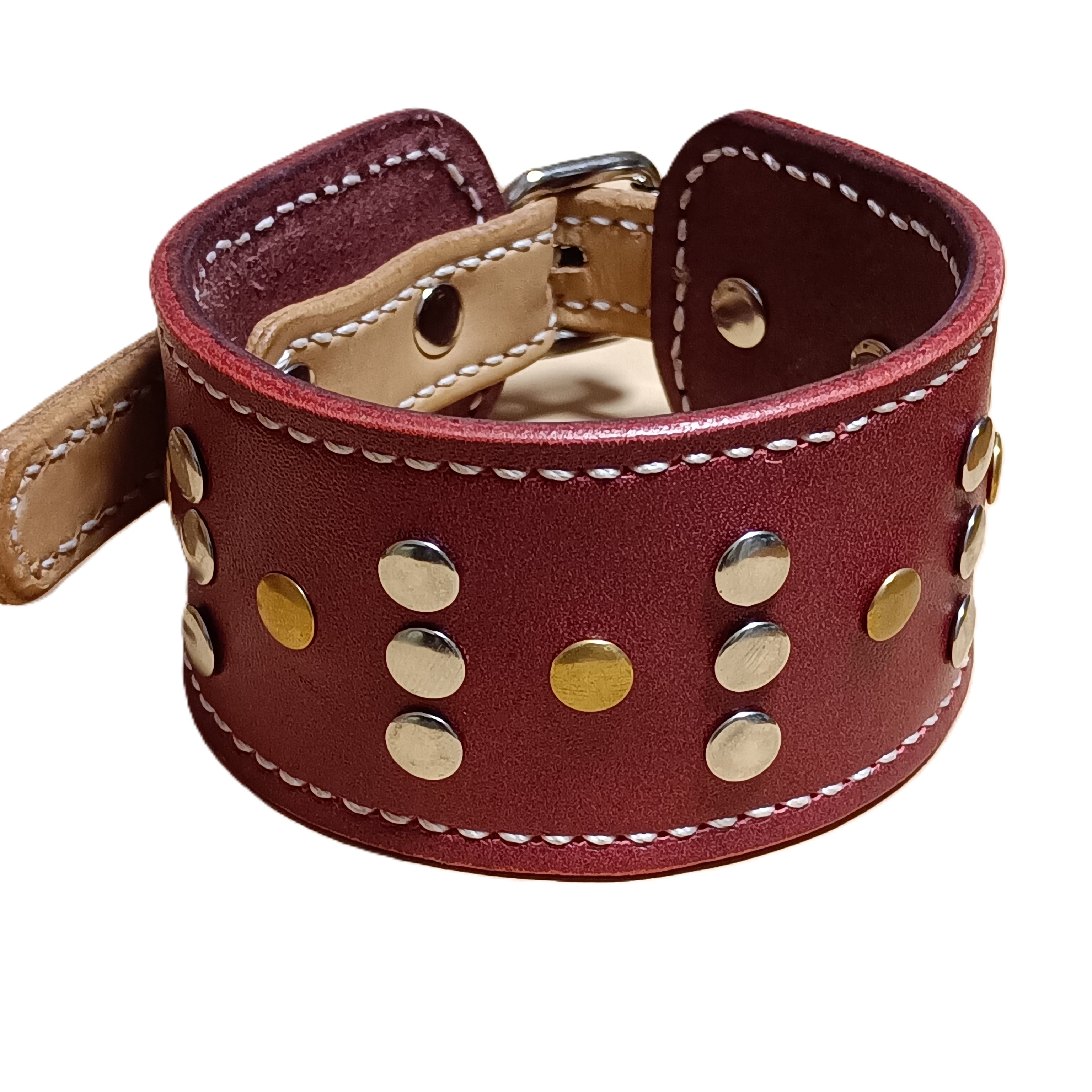 ソフトレザーをリベットで彩りました。