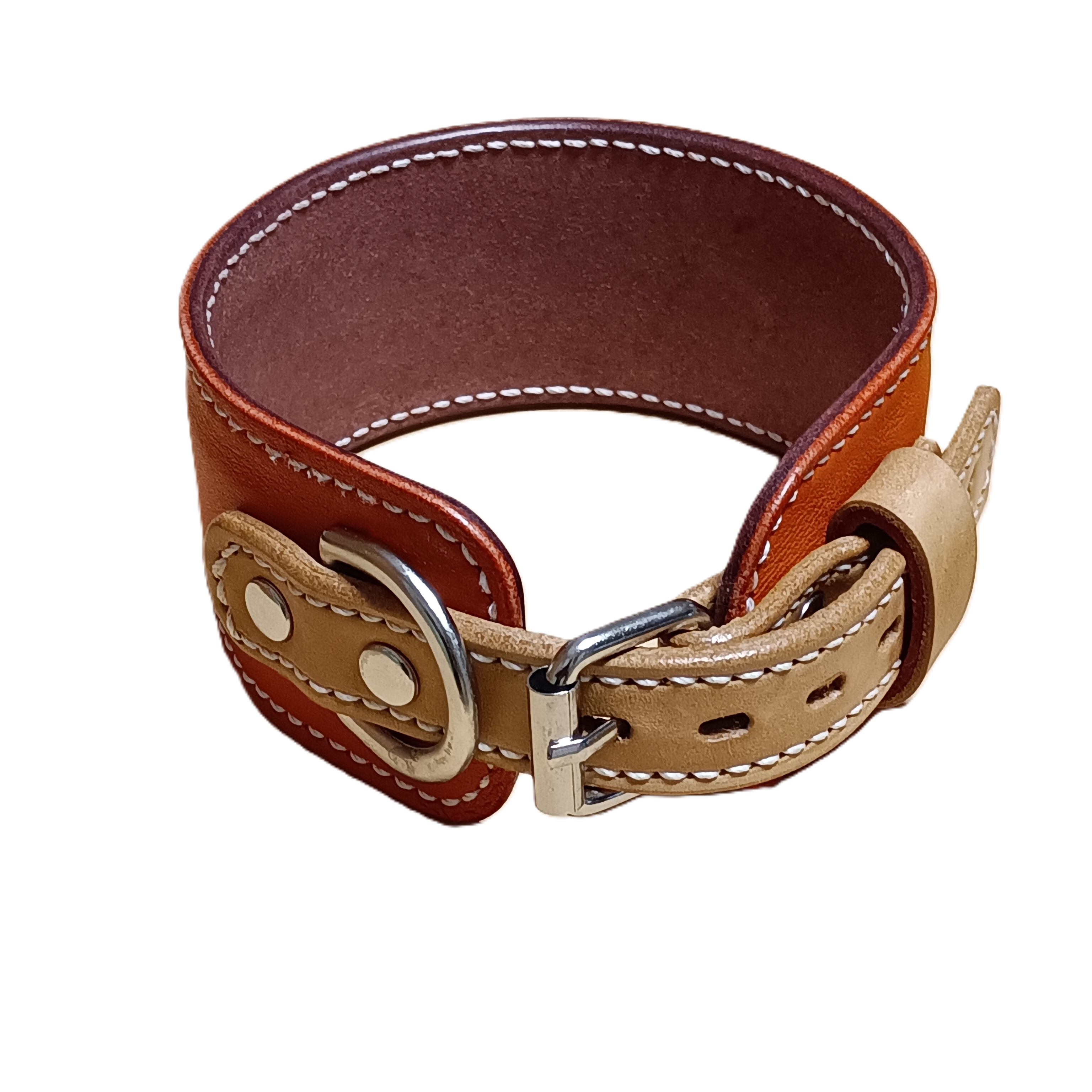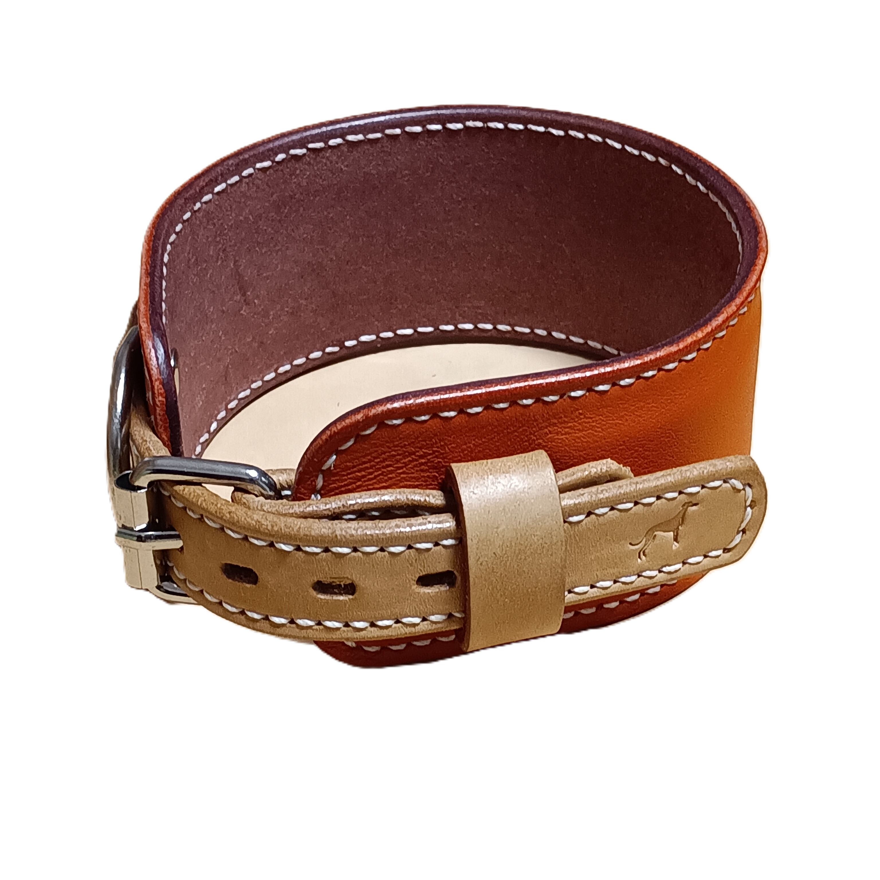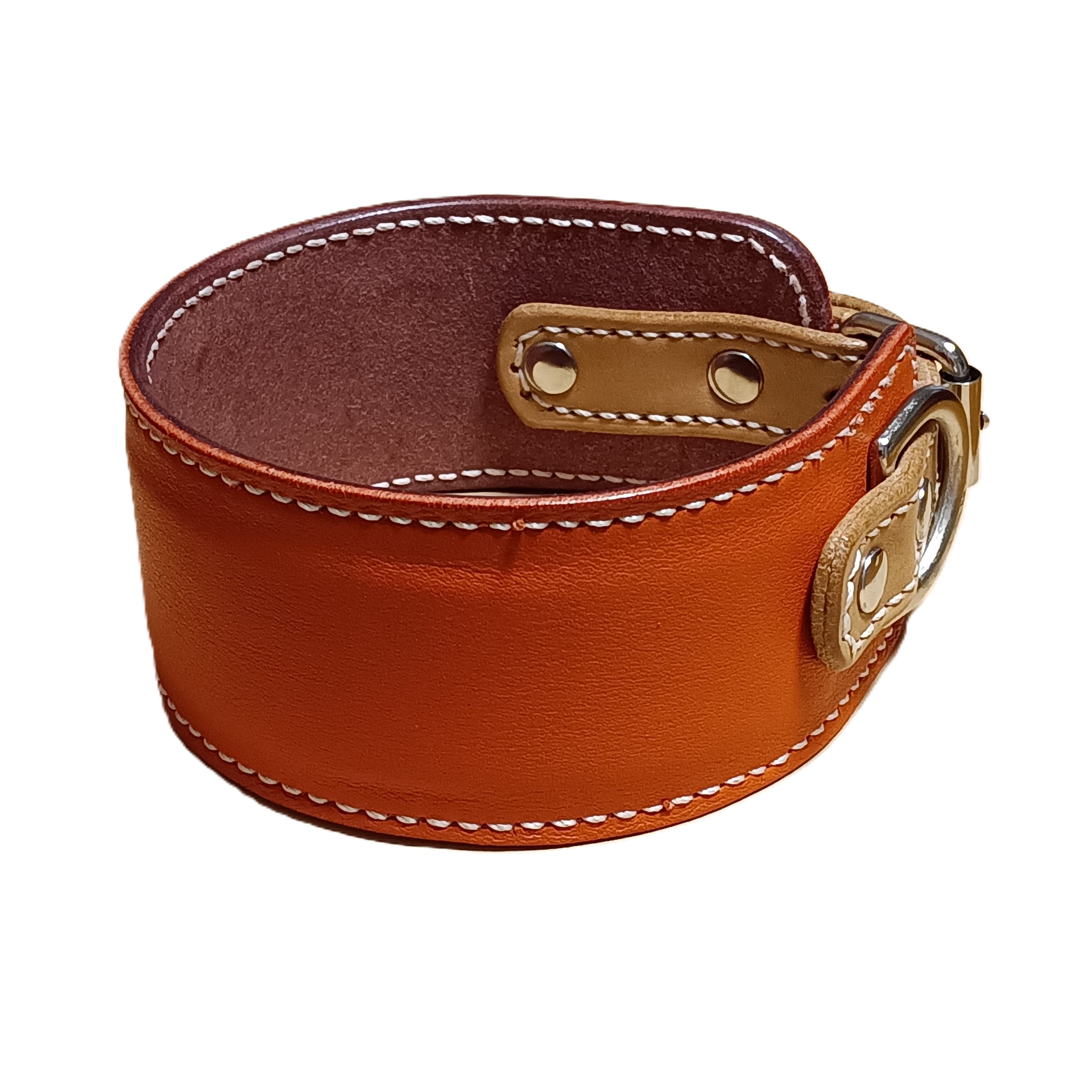 外側にはオレンジ色のソフトレザー、内側には肌当たりの良いナチュラルレザーを使用。