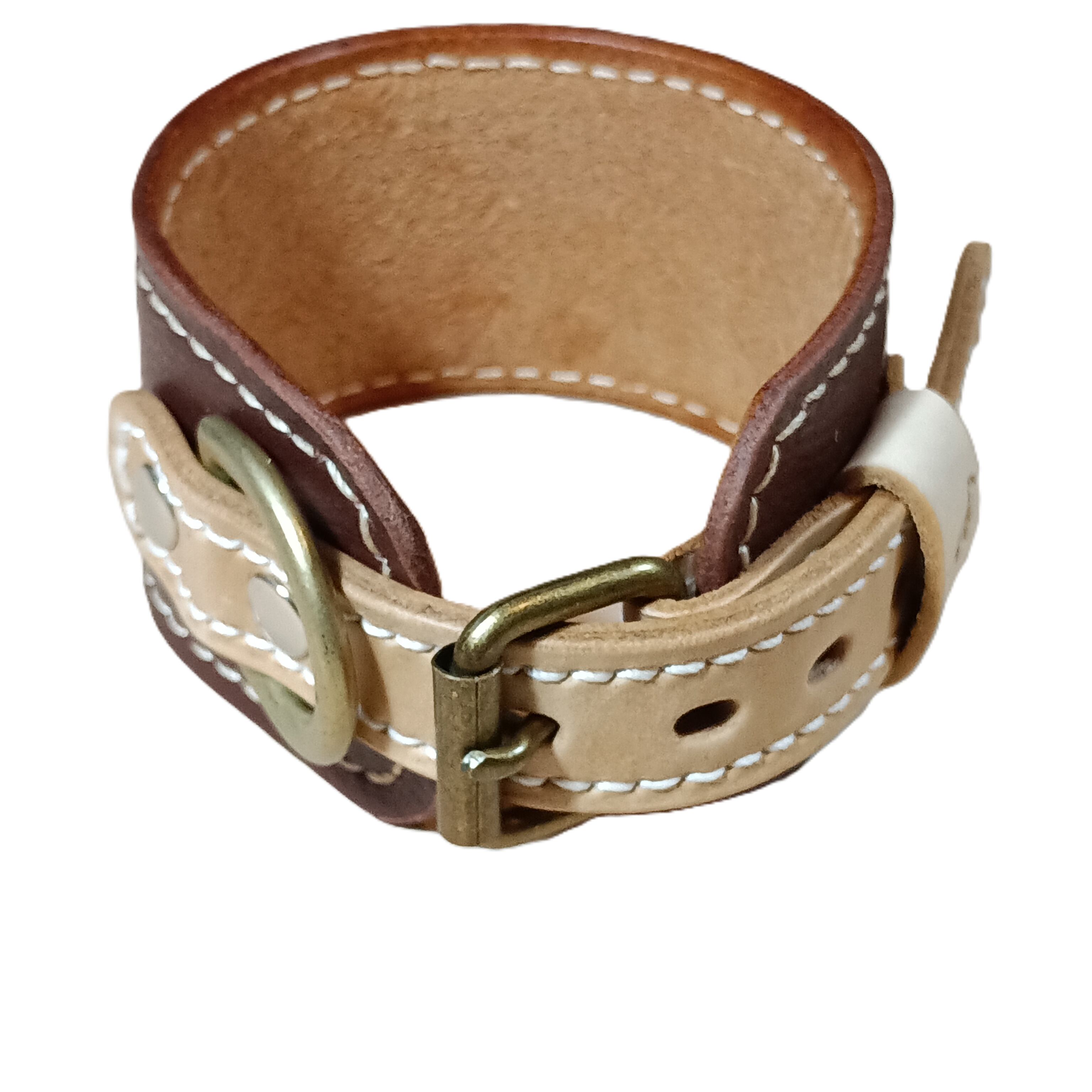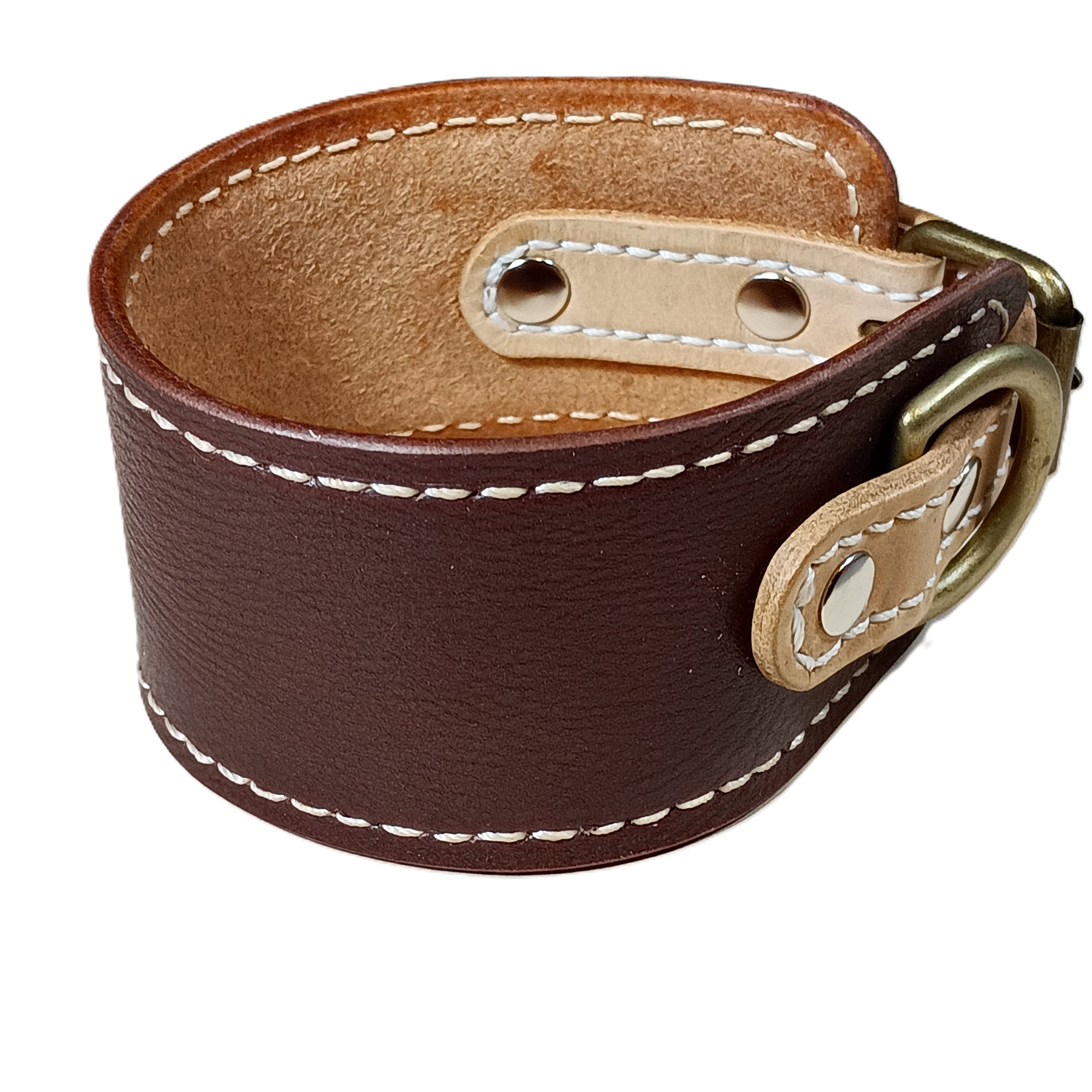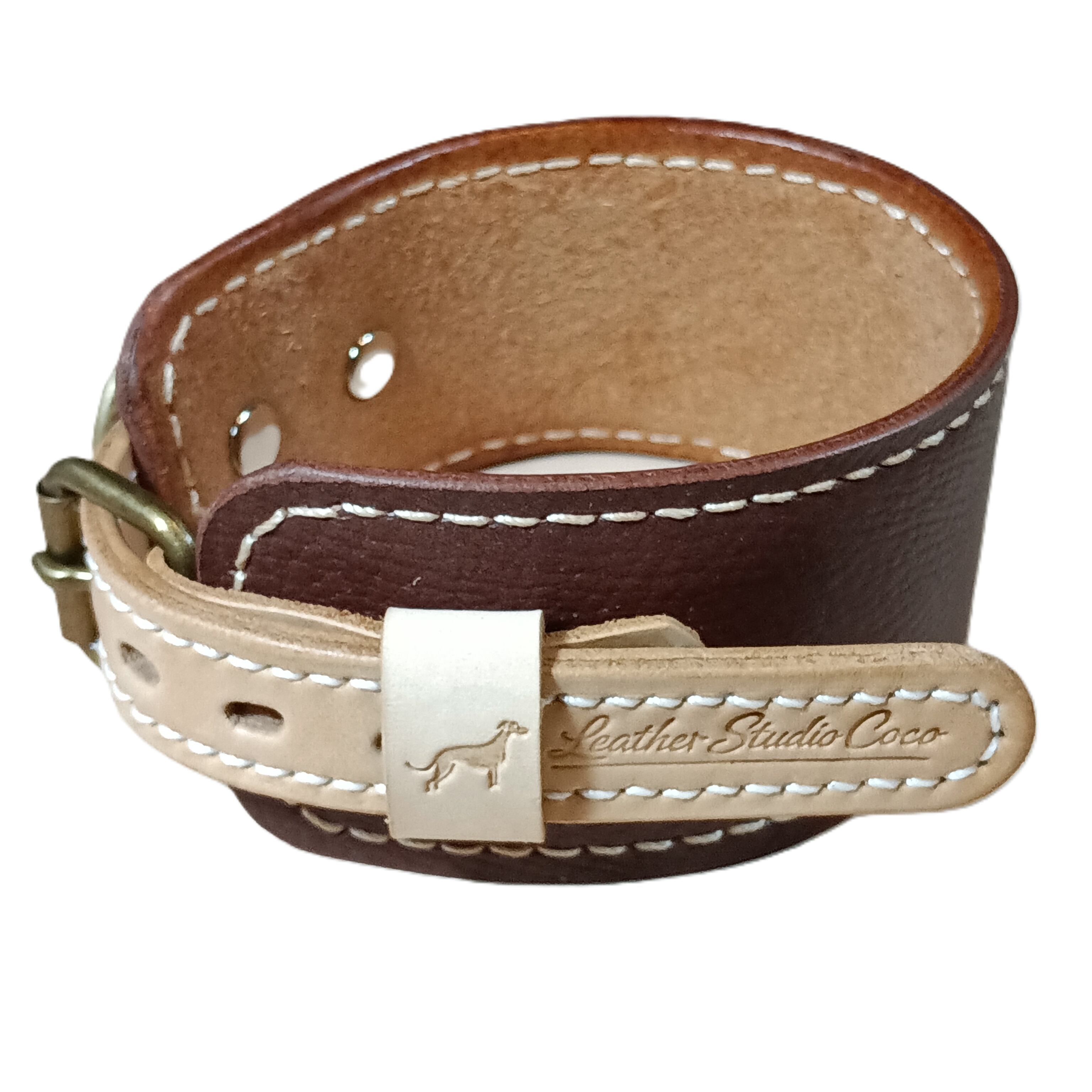 外側にはベーシックなダークブラウンのソフトレザー、内側には肌当たりの良いナチュラルレザーを使用。
