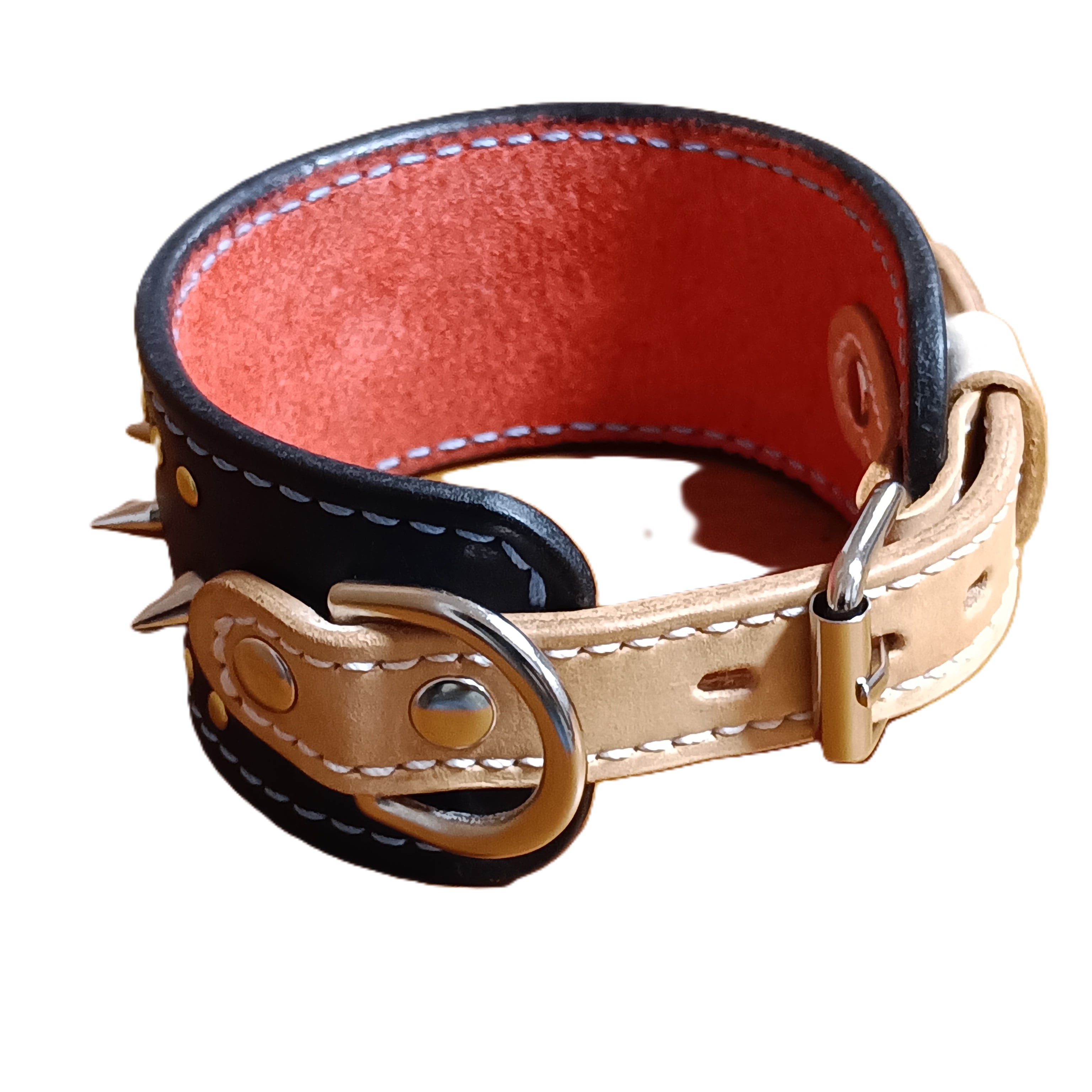 ソフトレザーにスタッズやコンチョで彩り小さなリベットで回りを飾りました。