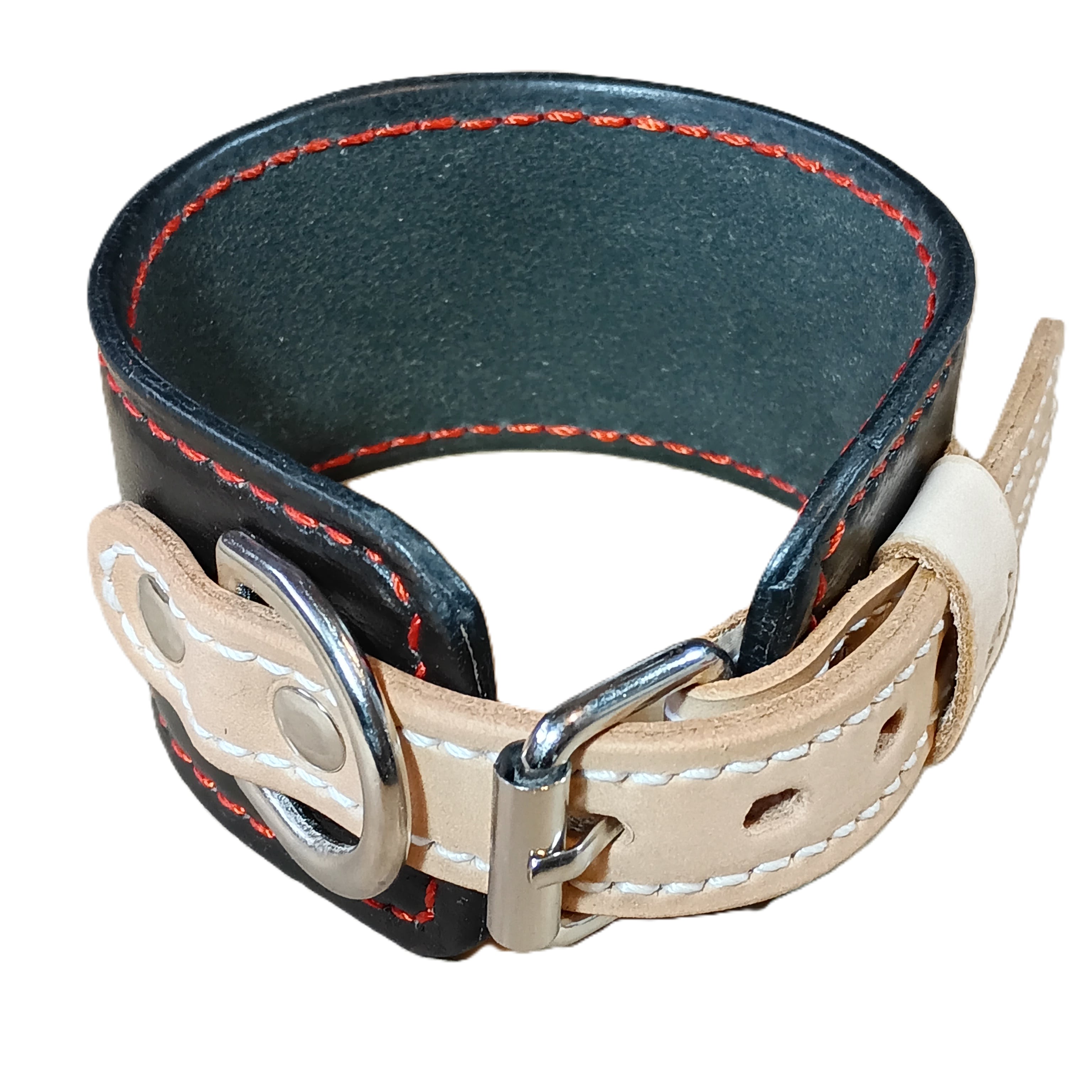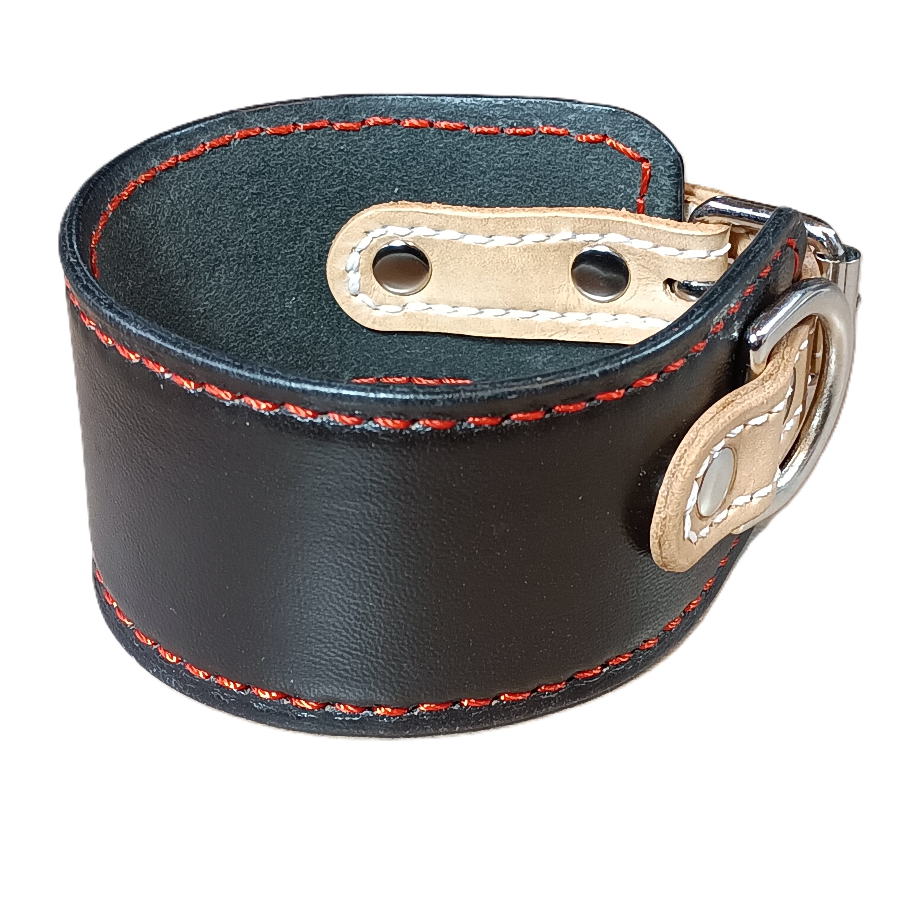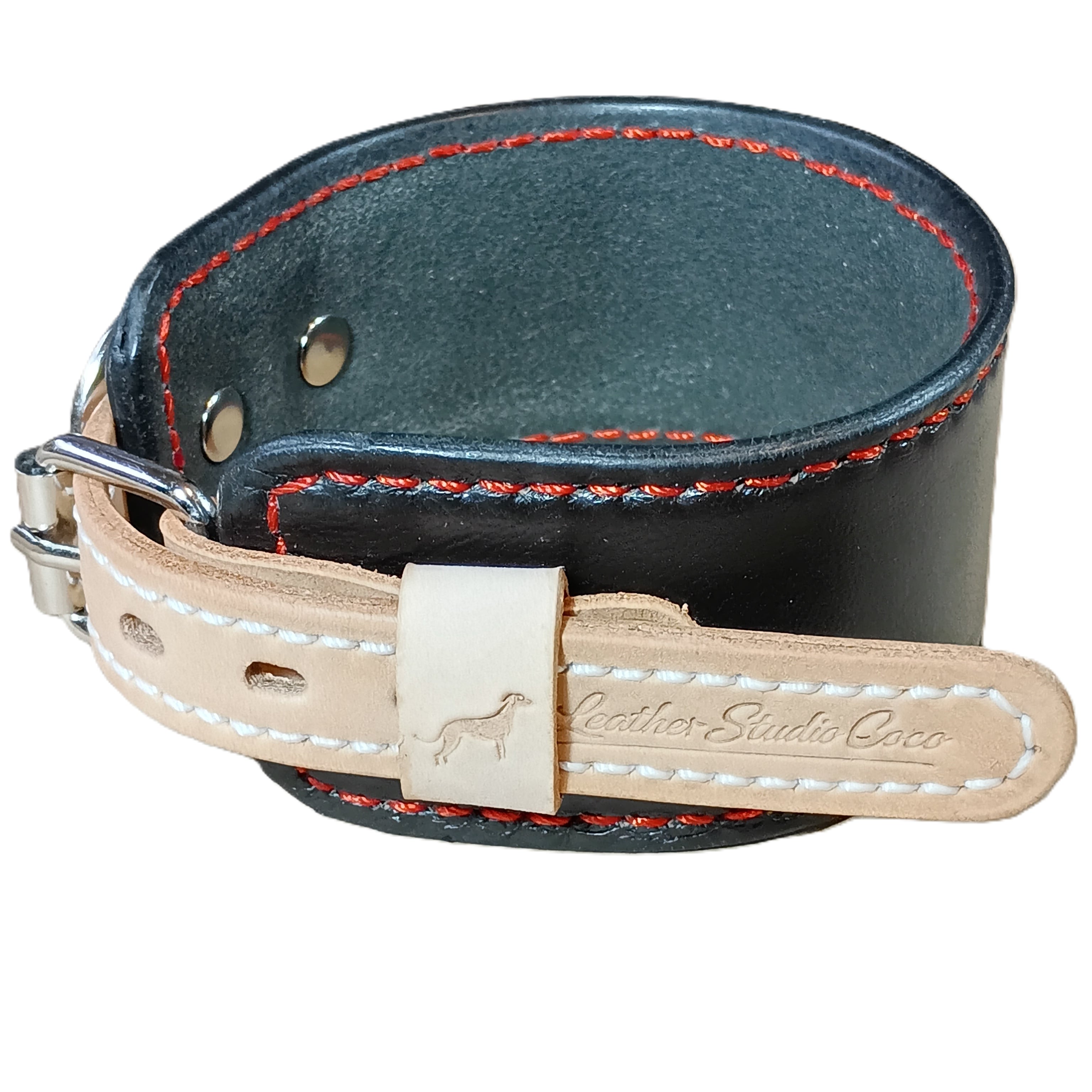 外側には柔らかい黒のソフトレザー、内側には肌当たりの良いナチュラルレザーを使用。